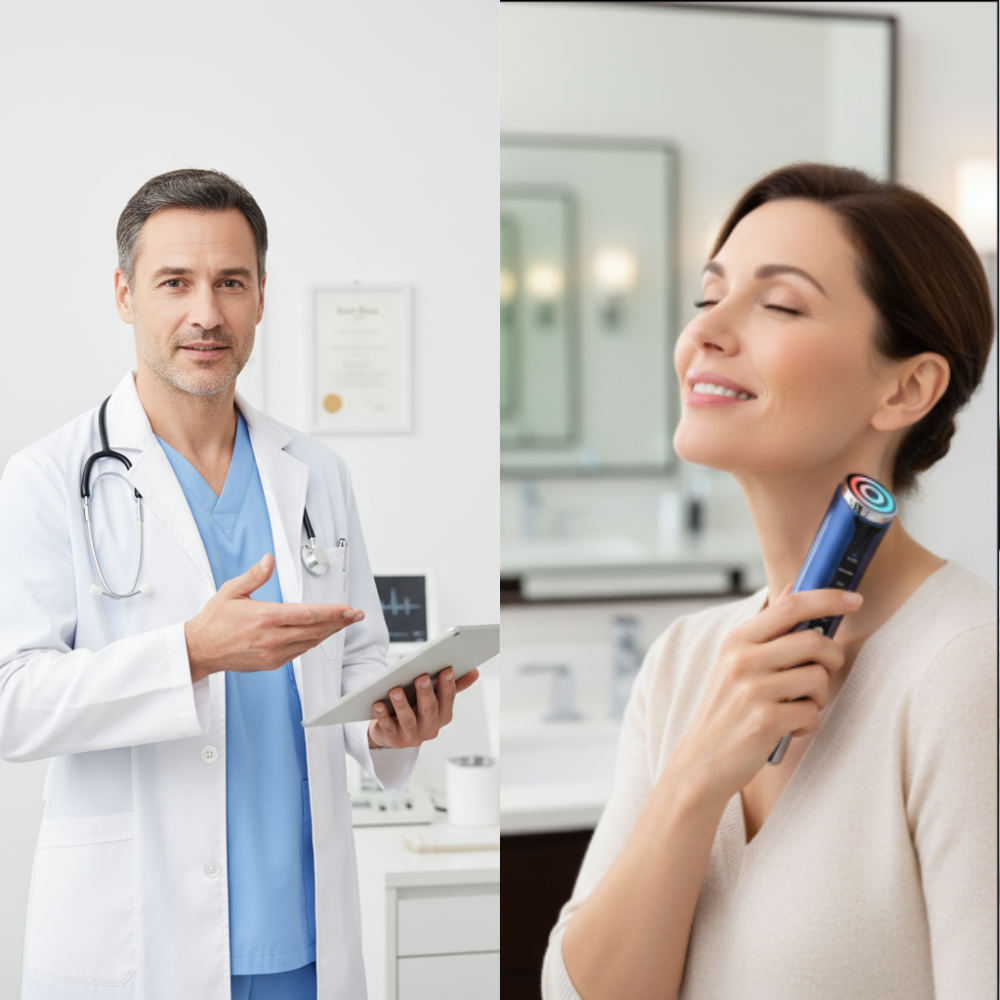 The same technology is used in professional treatments like Morpheus8 and FaceTite to reshape and rebuild aging skin. By heating deep tissue layers, it triggers your body's natural healing response to stimulate collagen production and tighten loose skin.