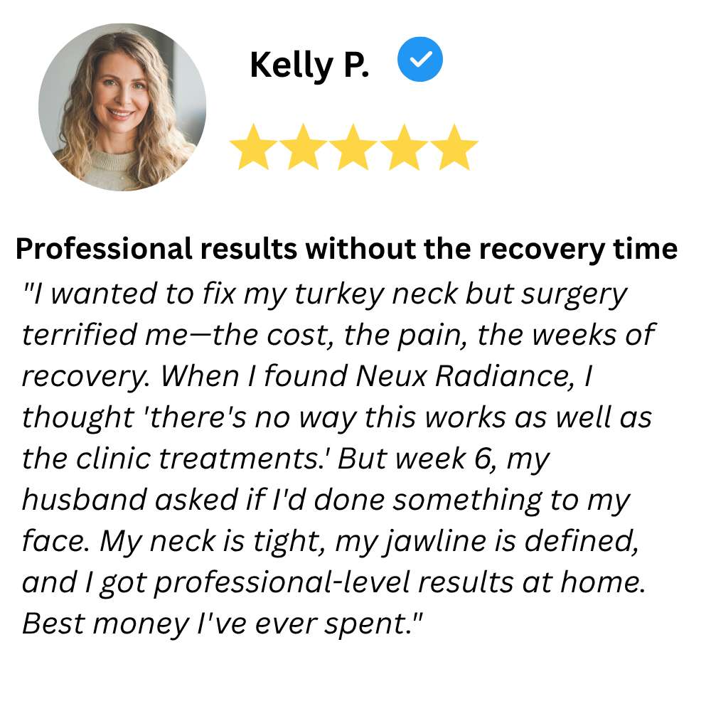 Researchers have discovered that women who used Neux Radiance were able to reverse their turkey neck by 87% in the first month.