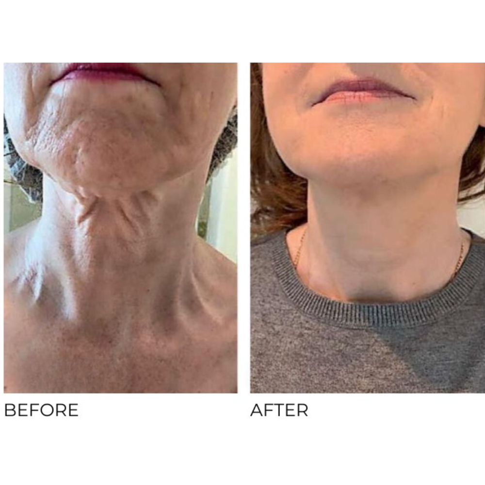 Our clients have reported noticeable skin tightening in as little as 2 weeks, while in most cases visible improvements to the neck and jawline were seen within 4-6 weeks.